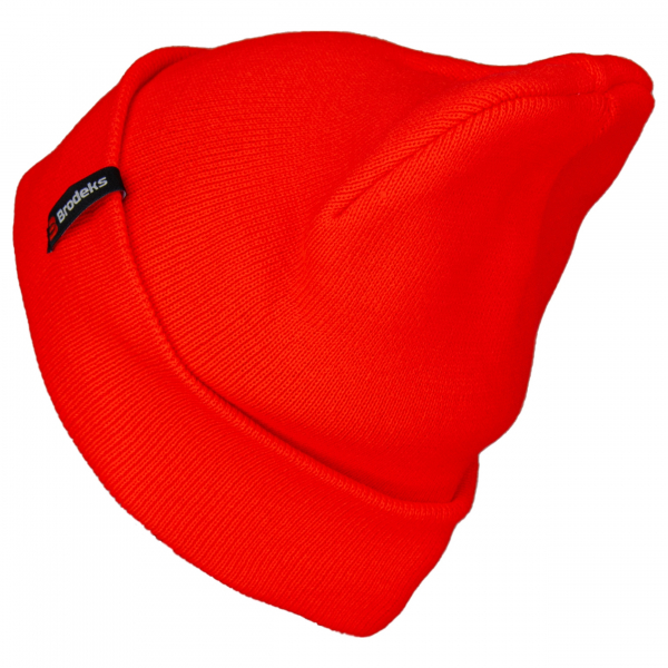 Шапка Brodeks HV оранж- яркая демисезонная шапка с отворотом. Выполнена из акриловой пряжи. Двухслойное полотно в мелкую резинку 1х1 хорошо держит форму. За счёт эластичности шапка комфортно облегает голову. Плотная вязка обеспечивает защиту от ветра. Изделие не мнётся и не деформируется. Модель длинная, поэтому её можно носить как с отворотом для более плотной и тёплой посадки, так и без него.