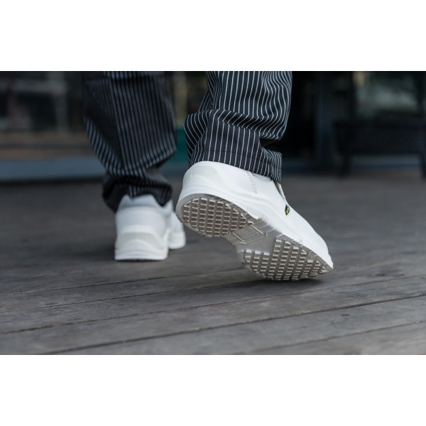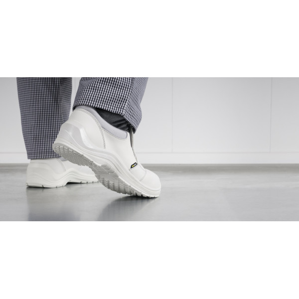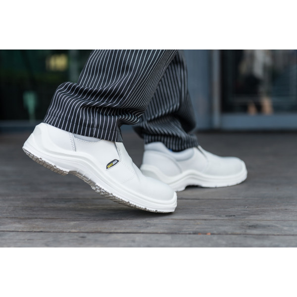 Рабочая обувь Safety Jogger GUSTO - это кожаные белые ботинки, которые станут отличным вариантом спецобуви для работников общественного питания, медицинских и лабораторных работников. Спецобувь обладает водоотталкивающими и антистатическими свойствами. Подкладка из нейлоновой сетки обеспечивает отличные дышащие свойства. Нескользящая подошва гарантирует хорошее сцепление на любой поверхности. Кроме того, данная модель защитной обуви имеет стальной подносок, дополнительную ПУ защита в области подноска, моделированную стелька, а также абсорбцию удара в области пятки при ходьбе, усиленный ребристый задник для абсорбции удара сзади, смягчающие элементы в области щиколотки, для типа ног со стандартным и высоким подъемом. Данная обувь снабжается Сертификатом соответствия таможенного союза ТР ТС.
