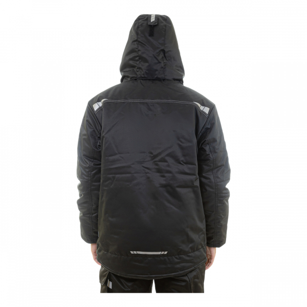 Зимняя куртка KW 206, черный с водоотталкивающей пропиткой – универсальный вариант куртки. Куртка выполнена из смесовой ткани с МВО-пропиткой. Легкий, «дышащий» утеплитель Shelter Micro надежно защитит от холода. Удлиненная спинка, подкладка на резинке, теплые манжеты и флисовый воротник – все эти продуманные детали помогут чувствовать себя комфортно даже в ветреную, холодную погоду. При производстве куртки используется только лучшая фурнитура. Основная молния с двух сторон оборудована ветрозащитной планкой. Куртка KW 206 отличается лаконичным дизайном, премиальными материалами, высококлассными техническими характеристиками. Подойдет для механиков, операторов, ИТР.