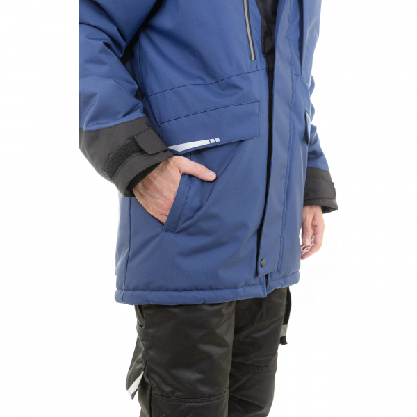 В этой куртке будет не холодно и в -40˚С. Дизайн и функционал куртки продуманы до мелочей и направлены на максимально комфортное и долговечное использование. Куртка застёгивается на прочную молнию сверху и снизу. Двойная ветрозащитная планка дополнительно защищает от ветра. Капюшон утеплён, он глубокий, можно носить с каской. Легко отстёгивается и регулируется в двух плоскостях – по овалу лица и по объёму. Воротник высокий, мягкая подкладка из микрофлиса добавляет уюта и тепла. От продувания оберегают утяжка в области талии и ветрозащитная юбка. Рукава имеют внутренние тёплые и эластичные манжеты. Сверху есть регулировка по объёму с помощью застёжки на липучке.