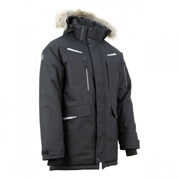 Куртка имеет удлинённый крой. Двухзамковая молния прикрыта двойной ветрозащитной планкой. Капюшон тёплый и глубокий, рассчитан на ношение каски. За ненадобностью его можно отстегнуть. Меховая опушка дополнительно защитит от метелей и сильных ветров. Также от продувания защищают высокий воротник, утяжка в талии и внутренние трикотажные манжеты. По низу рукавов расположены регулировки патами на липучке.