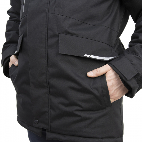 В куртке предусмотрено 10 карманов. Нижние карманы для рук утеплены мягкой подкладкой из микрофлиса. Нагрудные карманы застёгиваются на молнию. В кармане на рукаве можно носить пропуск. Во внутренний большой карман поместятся документы, планшет или шапка. Потайной карман можно использовать для самых важных вещей.